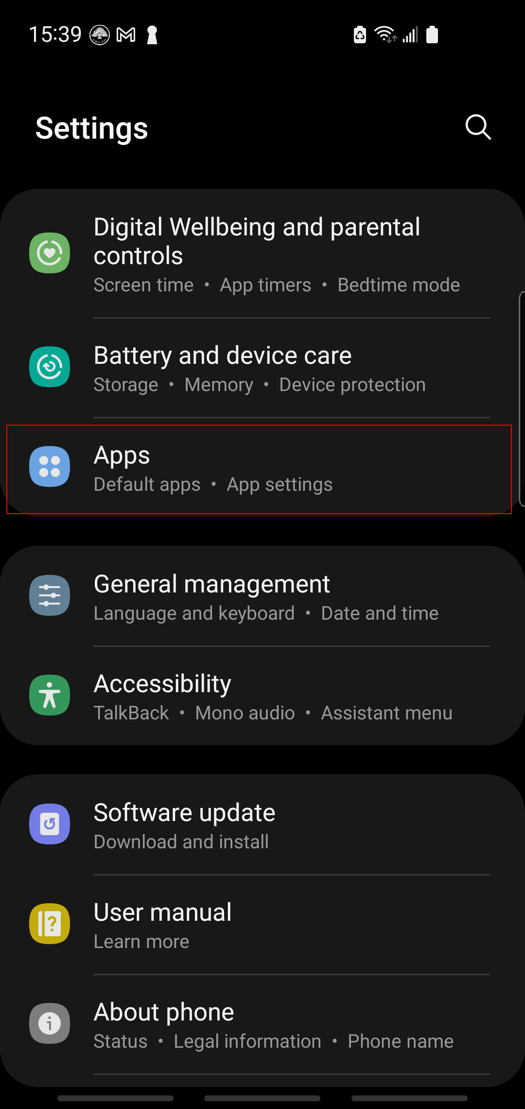 1. Go to OS settings and find Apps: