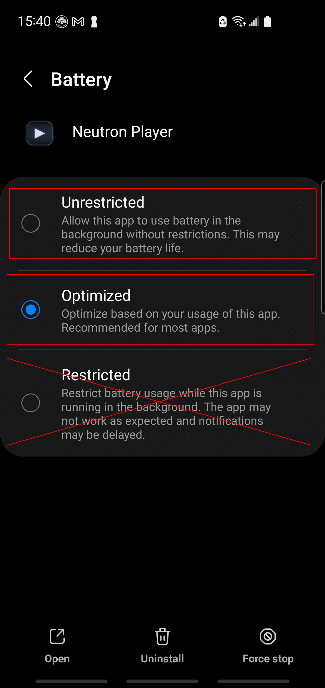 3. Go to OS settings → Apps → Neutron Player/Neutron Recorder → Battery → select Optimized or if does not help select Not Restricted