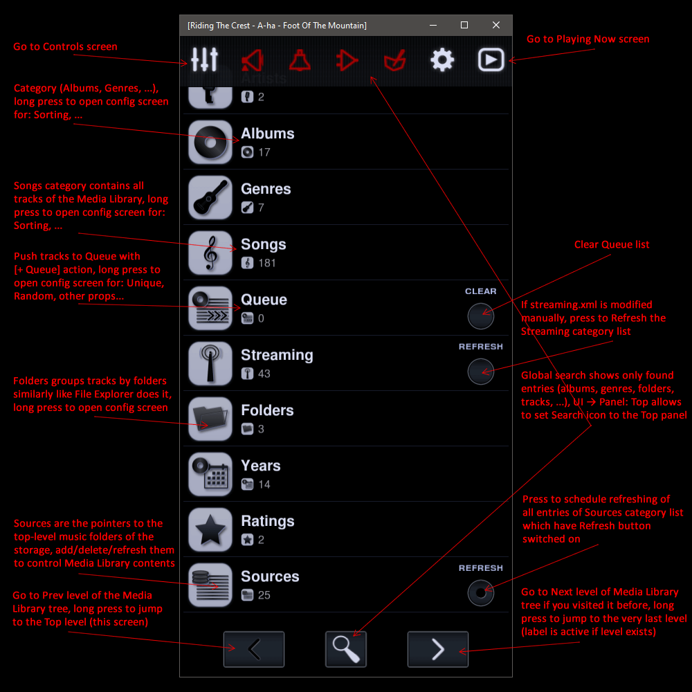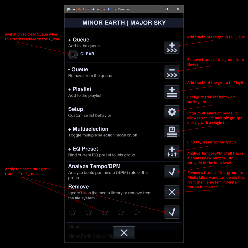 Group entry Properties screen (when album, artist, folder, ... entry is long-pressed)