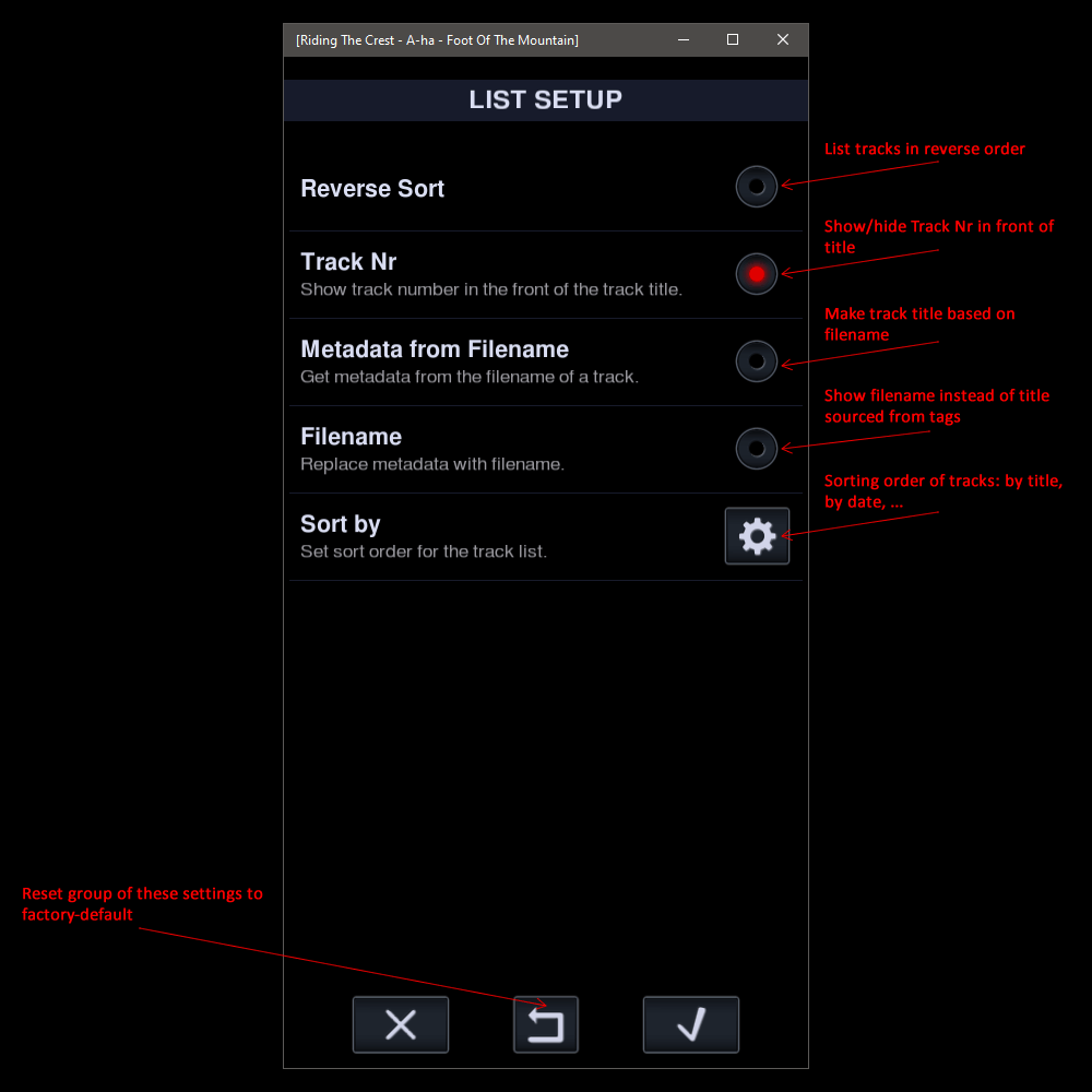 Group category Properties screen (long press Playlist, Albums, Artists, ...)